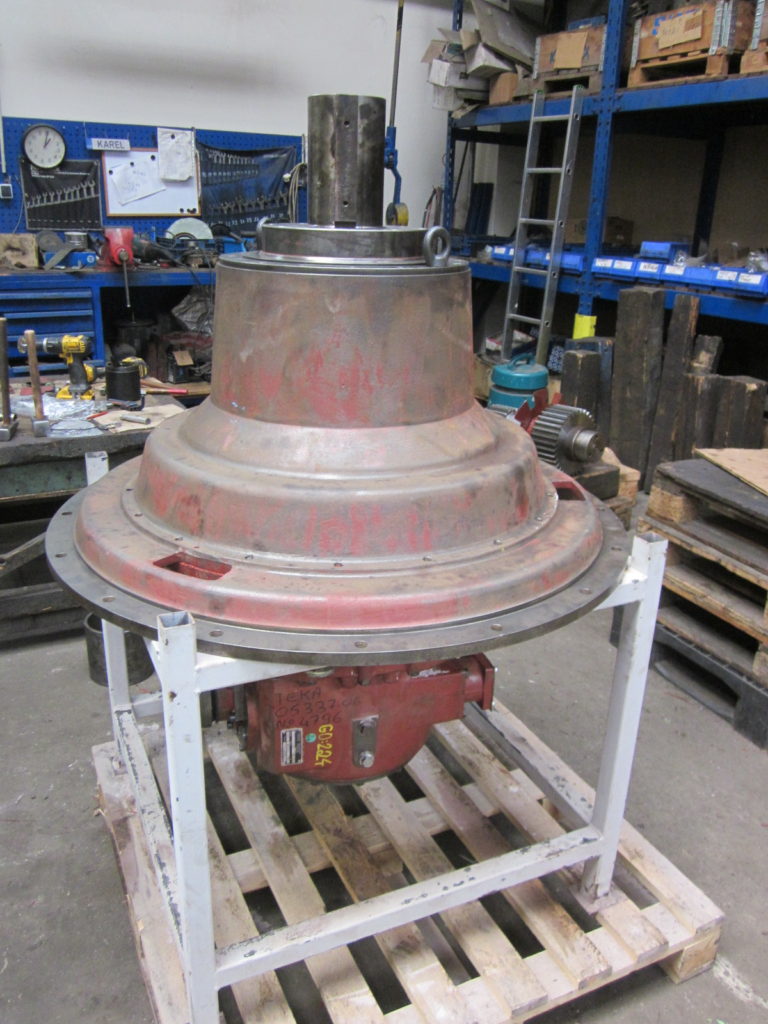 Třístupňová převodovka TEKA CT13250.60, určená pro pohon mlýnu ve sklárně, kombinuje jeden kuželový převod a dva planetové převody. Zařízení bylo dodáno v demontovaném stavu a bez dostupné výkresové dokumentace, což vyžadovalo pečlivou analýzu všech komponent a jejich přesné zaměření.
